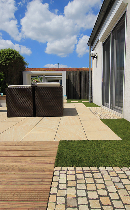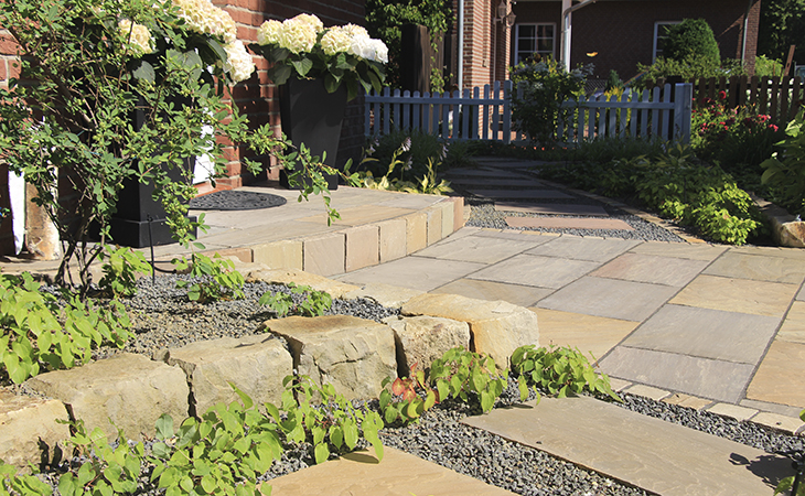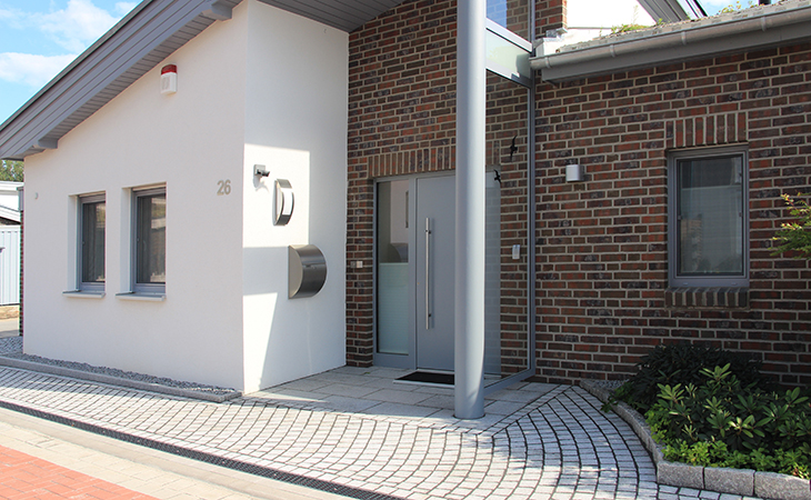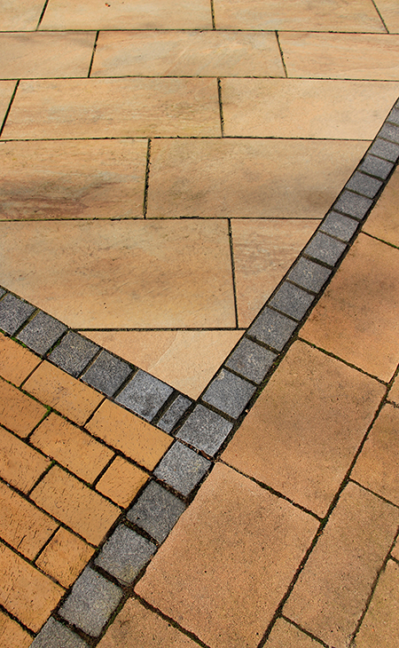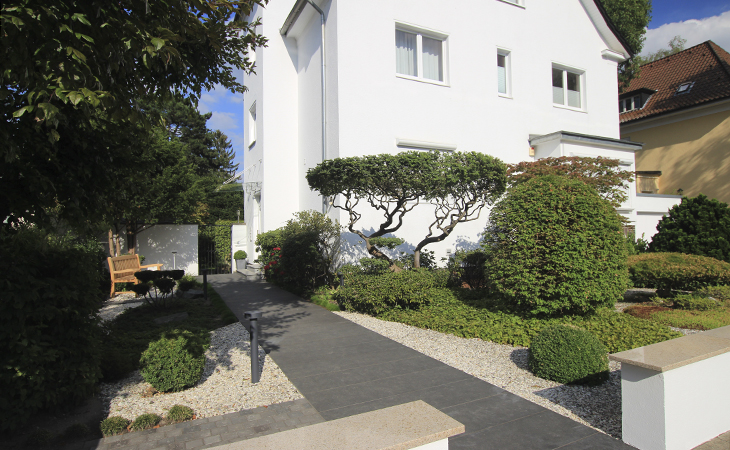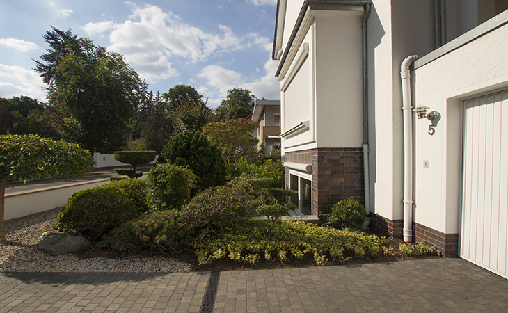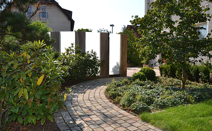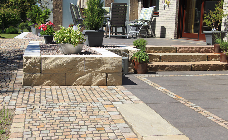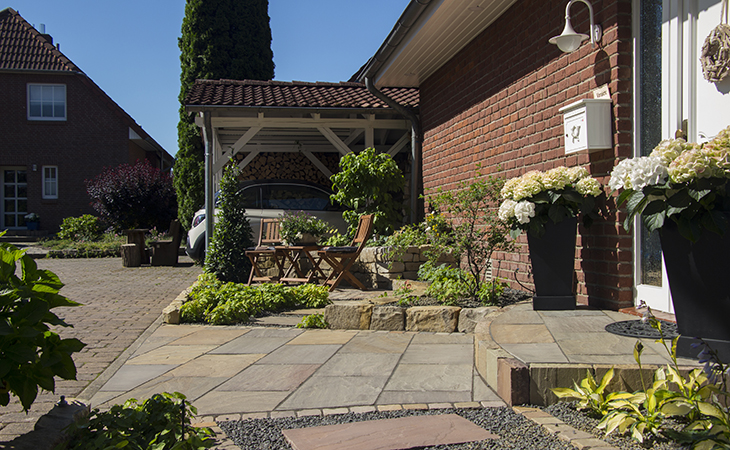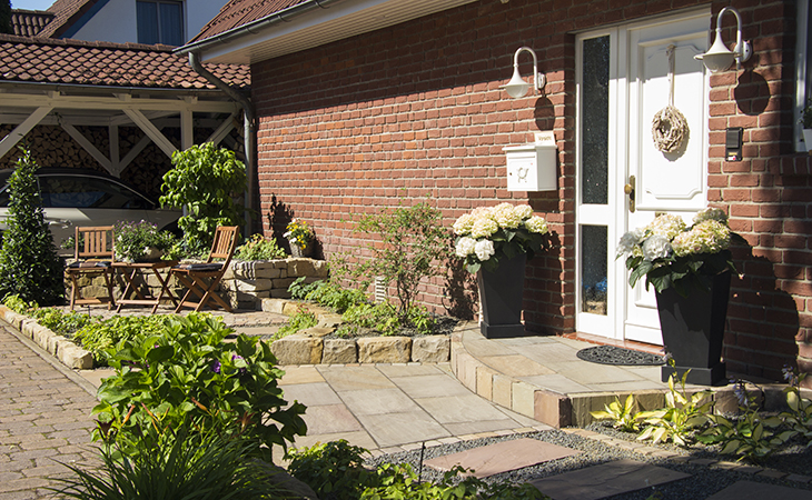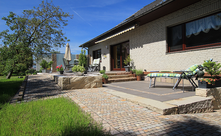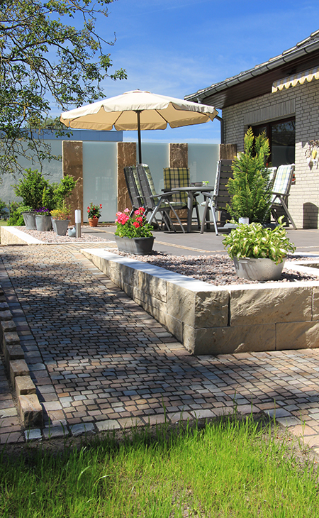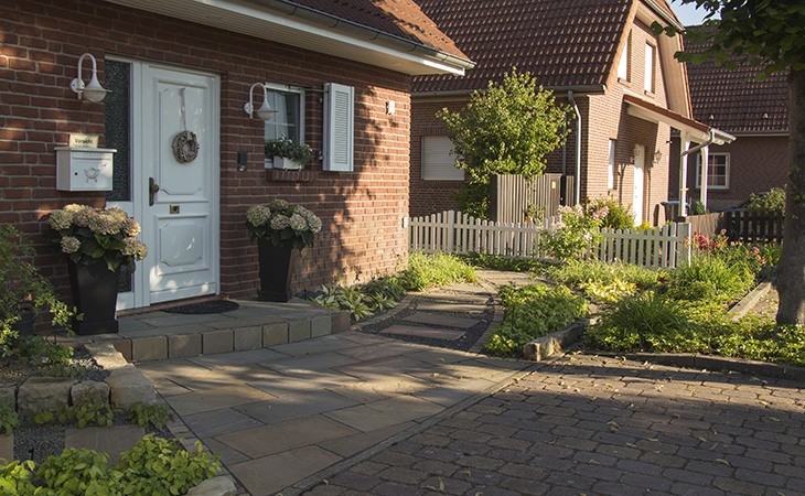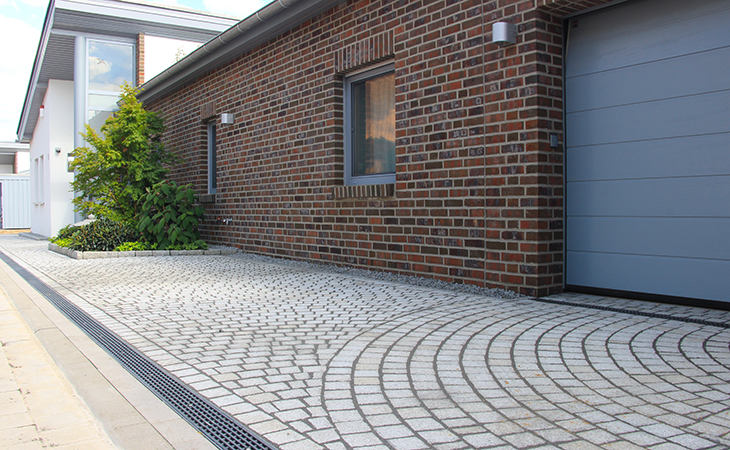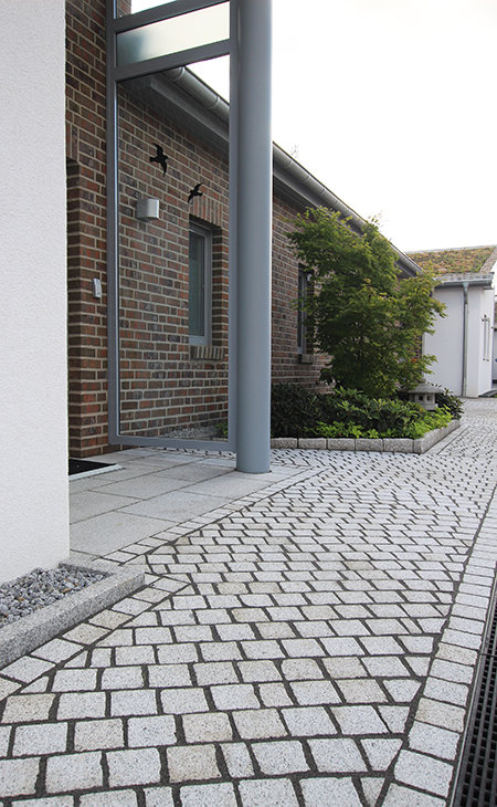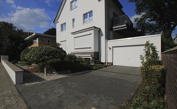 Pflasterkunst im kompletten Eingangs- und Garagenbereich